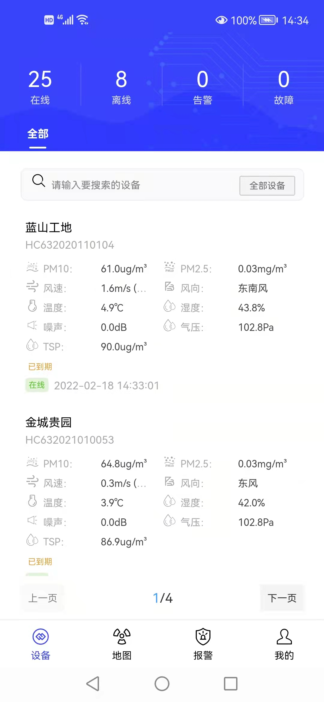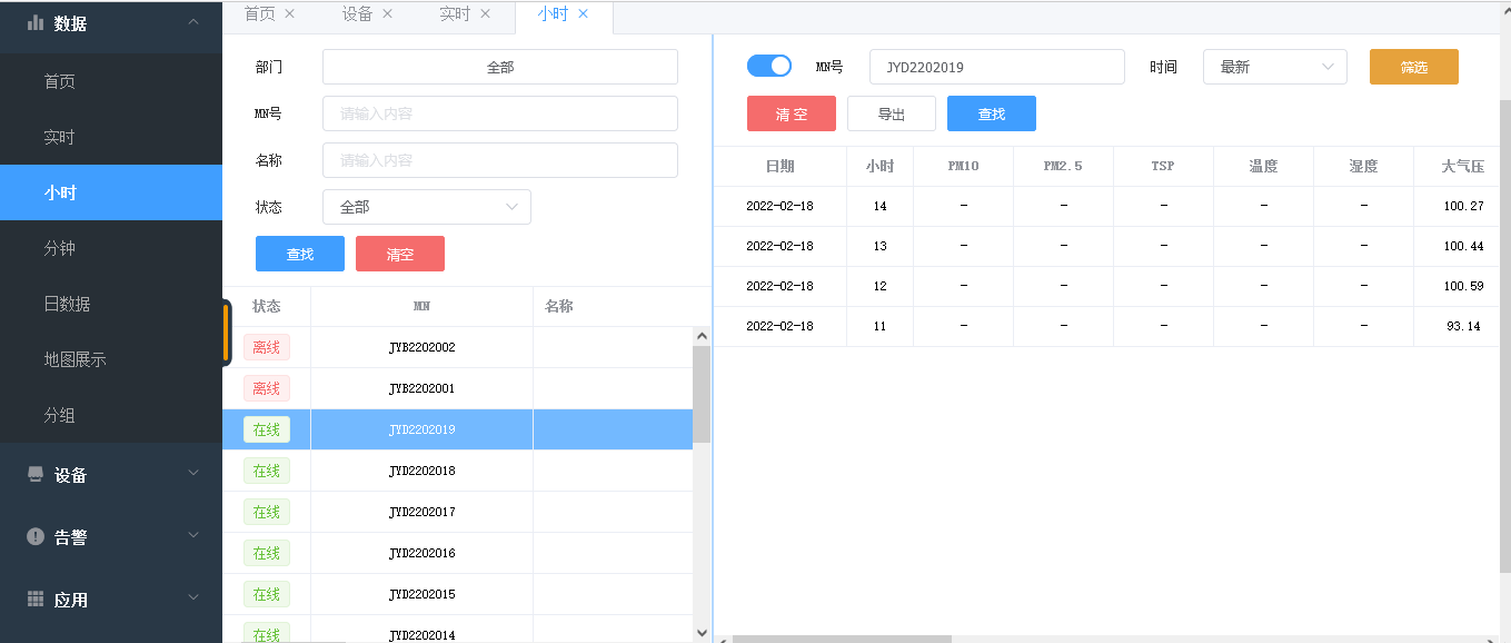 4.數據平臺:本司提供免費云平臺,并可協助客戶對接政府或客戶自建平臺。通過數據平臺可以實時了解整個轄區范圍內所有在建項目揚塵在線監測設備的運行情況,可以查詢、統計不同階段的揚塵監測情況繪制實時曲線。