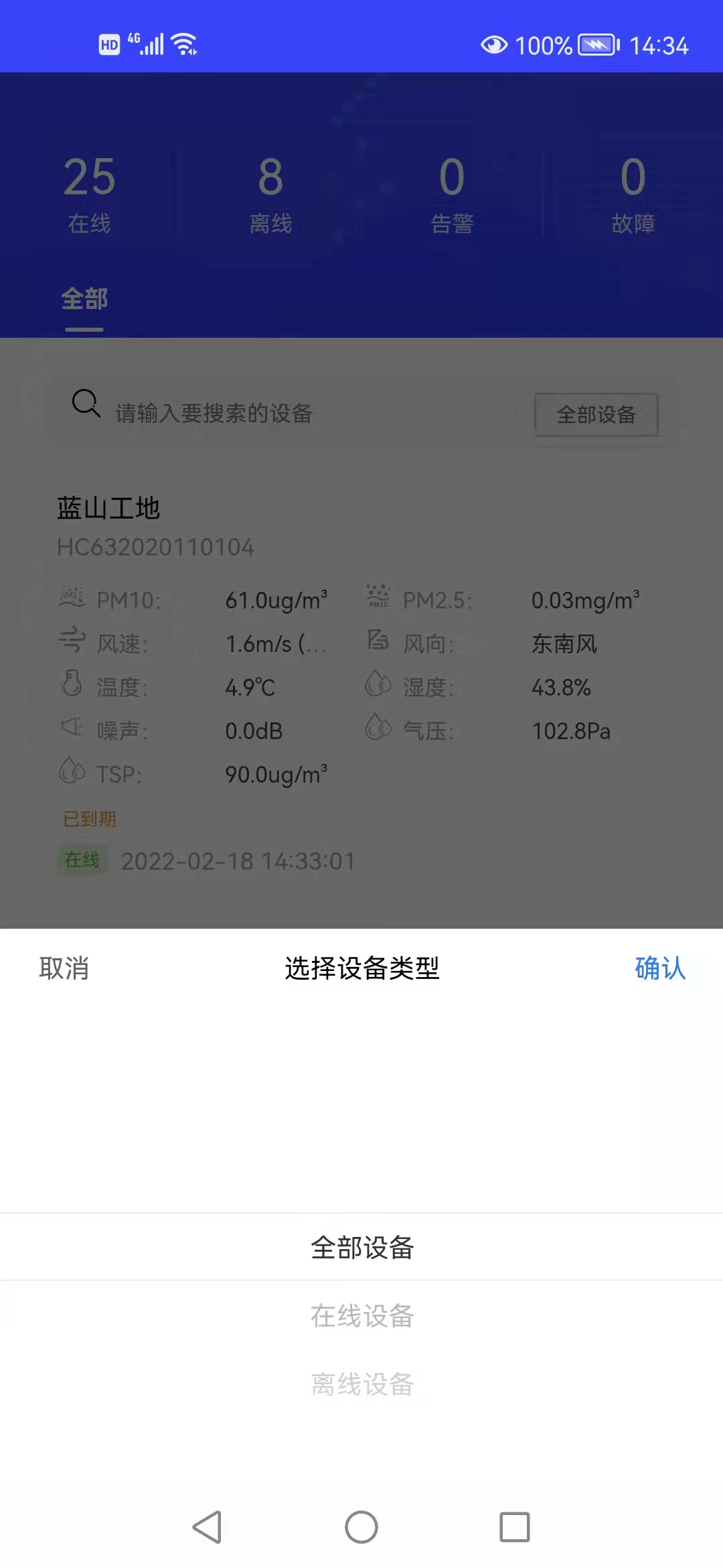 5)通過配套的軟件監控平臺可以實時了解揚塵監測情況,同時支持手機APP遠程觀看,真正做到隨時隨地關注工地現場情況。
